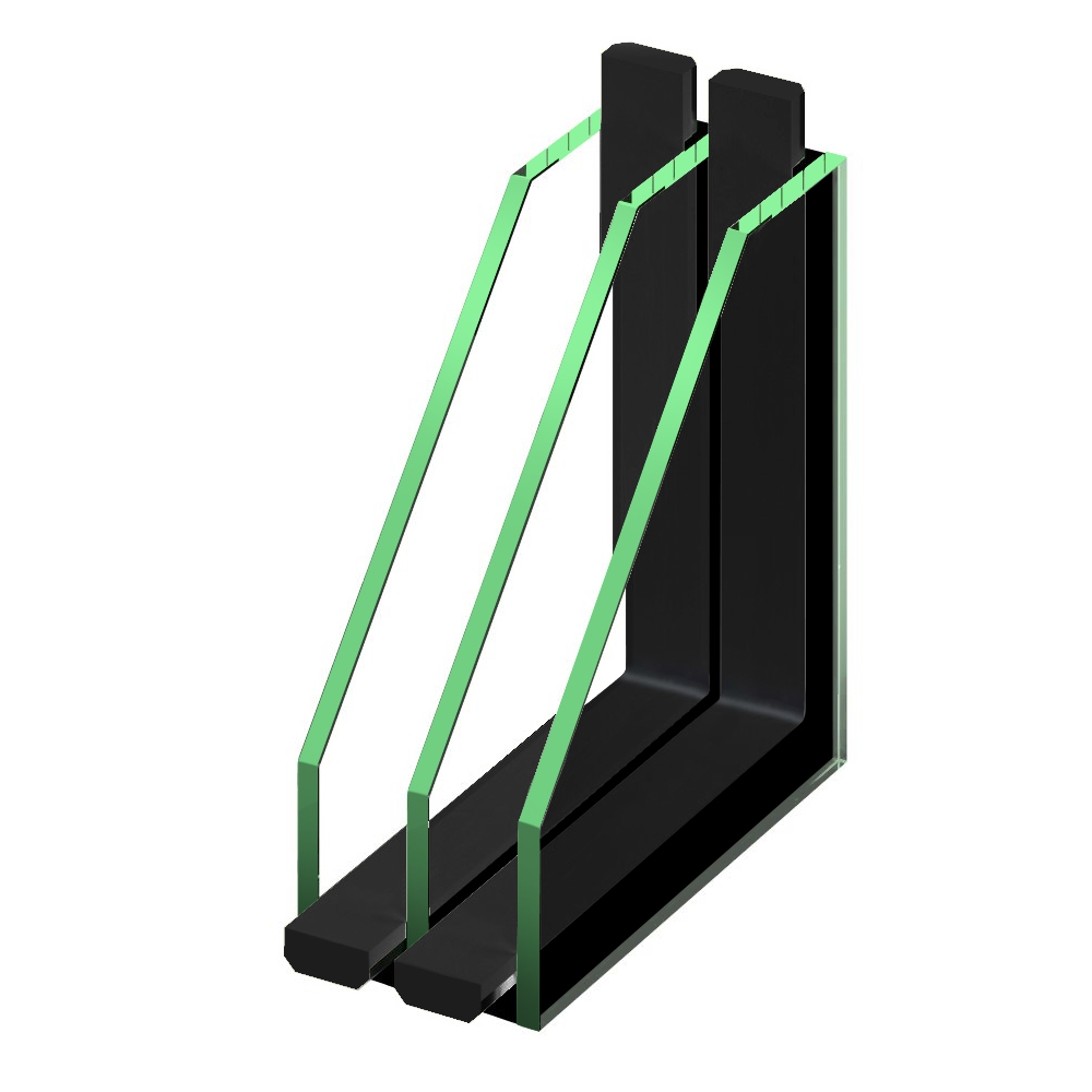 Izolační trojskla jsou tvořena třemi tabulemi plochého skla, jejichž vzdálenost je vymezována distančním rámečkem. Distanční rámeček je naplněn vysoušecím prostředkem, který zabraňuje kondenzaci vodních par v meziskelním prostoru. Celoobvodové spojení skla s rámečkem je provedeno trvale plastickým tmelem (tzv. butylem), který působí jako bariéra proti úniku inertního plynu a proti pronikání vlhkosti do meziskelního prostoru. Vnější okraj je utěsněn trvale pružný tmelem, který zabezpečuje pevnost a odolnost proti mechanickému namáhání.